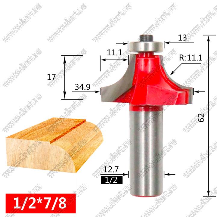 Фреза по дереву для скругления углов; типоразмер 1/2 x718; D=35,20мм; R=11,10мм; B=11,10мм; H=16,00мм