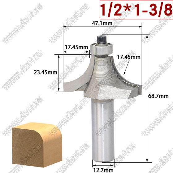 Фреза по дереву для скругления углов; типоразмер 1/2 x 1-3/8; D=49,93мм; R=17,46мм; B=17,46мм; H=23,00мм