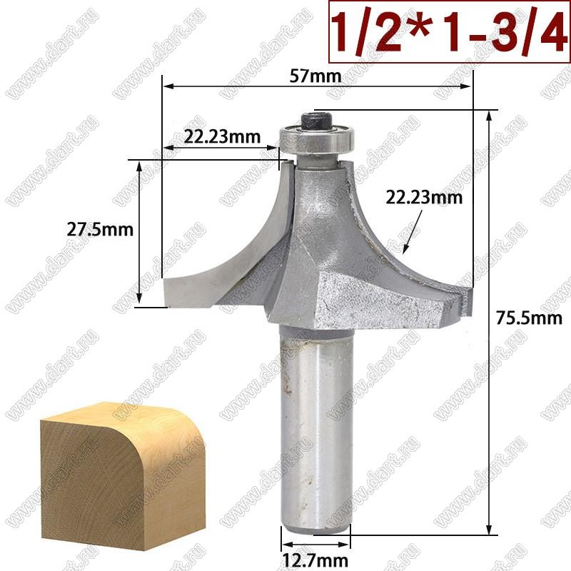 Фреза по дереву для скругления углов; типоразмер 1/2x 1-3/4; D=59,45мм; R=22,23мм; B=22,23мм; H=29,00мм