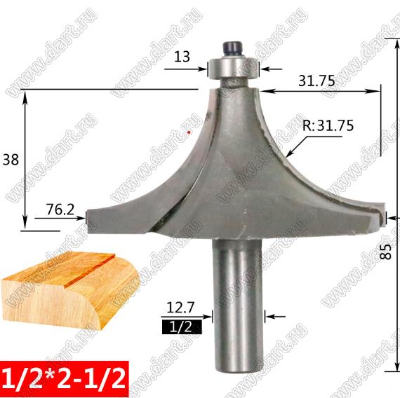 Фреза по дереву для скругления углов; типоразмер 1/2 x 2-1/2; D=78,50мм; R=31,75мм; B=31,75мм; H=38,00мм