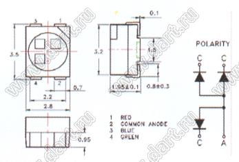 Каталог > Оптоэлектроника и индикация > Светодиоды и изделия на светодиодах > ЧИП светодиоды для поверхностного (SMD) монтажа на плату > ЧИП светодиоды SMD полноцветные (RGB) > BT67-2302SURUBGUBCS