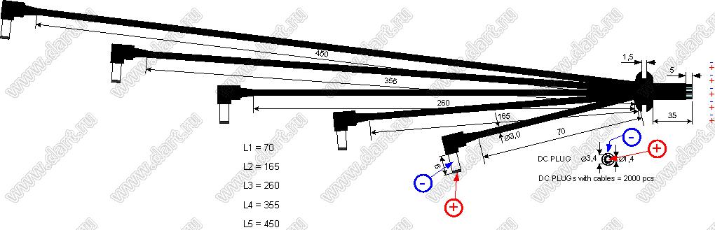 5xDC CABLE with DC313 angle plug 3,4x1,4x8