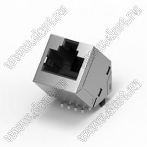 Разъем высокоскоростной RJ45 Cat 6, угловой 47,5°, верхняя защелка, DIP, без EMI, без светодиода, 5u"