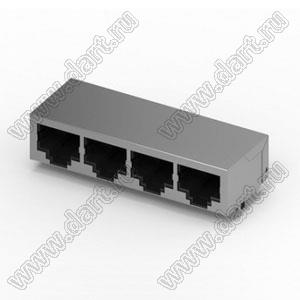 Разъем RJ45 1x4, угловой, нижняя защелка, DIP, без EMI, без светодиода, 5u"