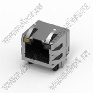 Разъем RJ45 экранированный, угловой, верхняя защелка, DIP, со светодиодом, 5u"