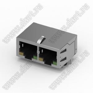 Разъем RJ45 экранированный, 1x2, угловой, верхняя защелка, DIP, со светодиодом, 5u"