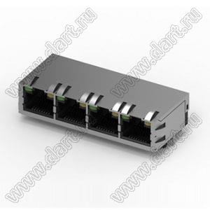 Разъем RJ45 магнитный, 1х4, угловой, верхняя защелка, DIP, экранированный, со светодиодом, 5u"
