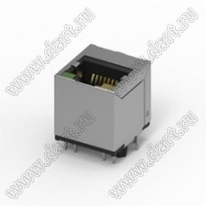 Разъем RJ45 магнитный, вертикальный, DIP, неэкранированный, со светодиодом, 5u"