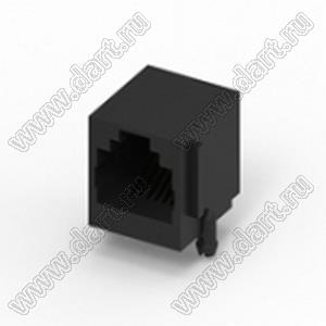 Разъем RJ45, угловой, верхняя защелка, DIP, 6P6C, без EMI, без светодиода, 5u"
