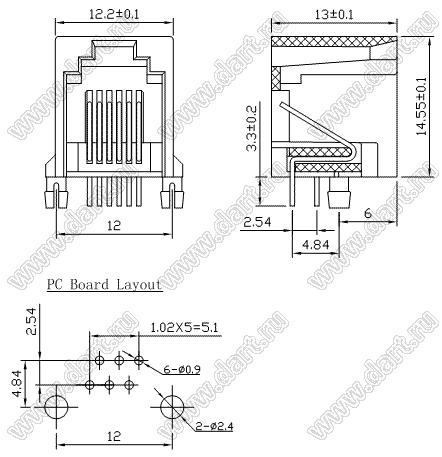 Каталог > Электронные компоненты, радиодетали > Разъёмы (соединители, переходники) > Разъемы RJ телекоммуникационные (телефонные, LAN, RJ-45) > 5511-66-100-001-L (6P6C)-SOCKET