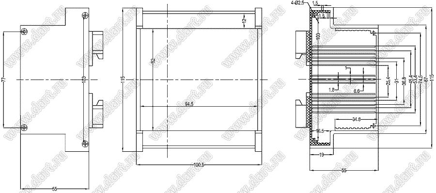 Каталог > Корпусные и установочные изделия > Корпуса для РЭА > Корпуса на DIN-рейку (стандартный электрический рельс) (Case 23-хх) > Case 23-12