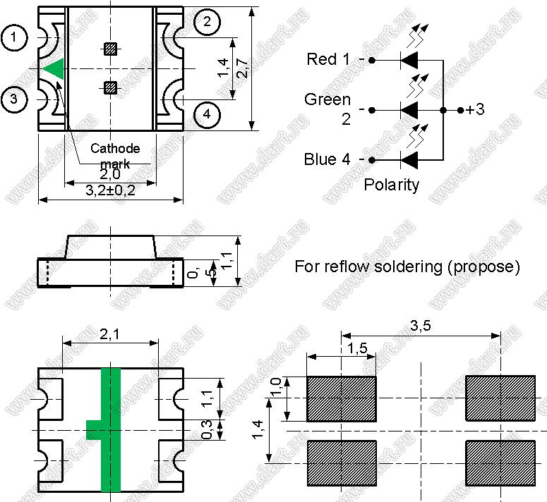Каталог > Оптоэлектроника и индикация > Светодиоды и изделия на светодиодах > ЧИП светодиоды для поверхностного (SMD) монтажа на плату > ЧИП светодиоды SMD полноцветные (RGB) > BT15-2301RGBW