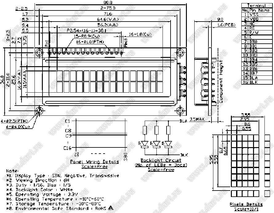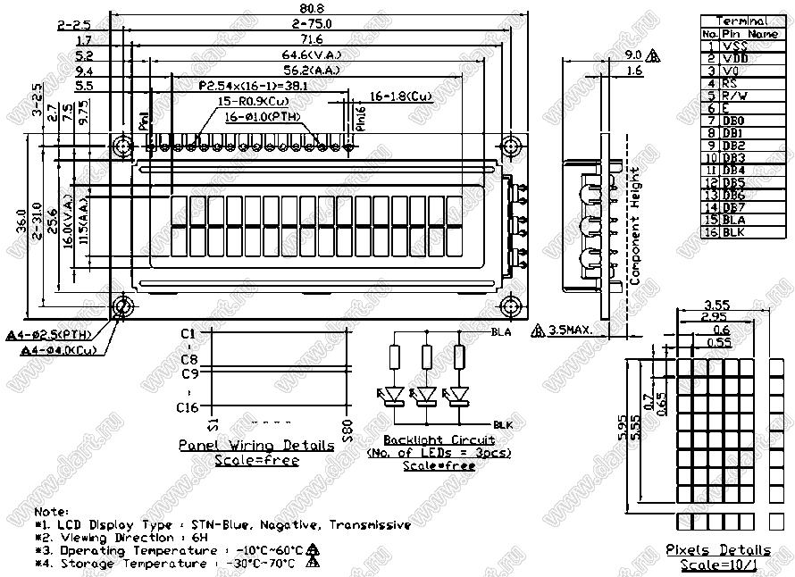 модуль жидкокристаллический 2 строки по 16 символов (2х16) с подсветкой