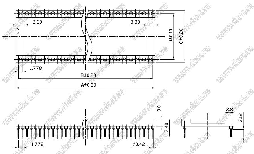 Каталог > Электронные компоненты, радиодетали > Разъёмы (соединители, переходники) > Панельки для микросхем > BL7220-28xxxS (DS1001-03-xxW13, TRSS-xx, 1778MC-xx) серия > DS1001-03-64D13 (TRSS-64, 1778MC-64-03)