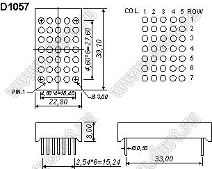 Каталог > Оптоэлектроника и индикация > Индикаторы светодиодные (сегментные дисплеи, матрицы, шкалы, светящиеся поля) > Точечные cветодиодные матрицы > 1,2" (5x7) точечная серия > BJ1057BB