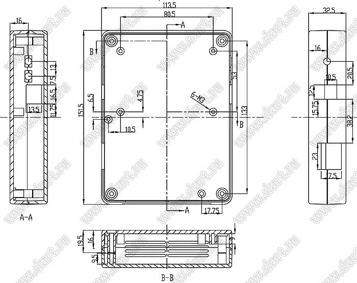 Коробка электрическая соединительная 151.5x113.5x32.5 мм
