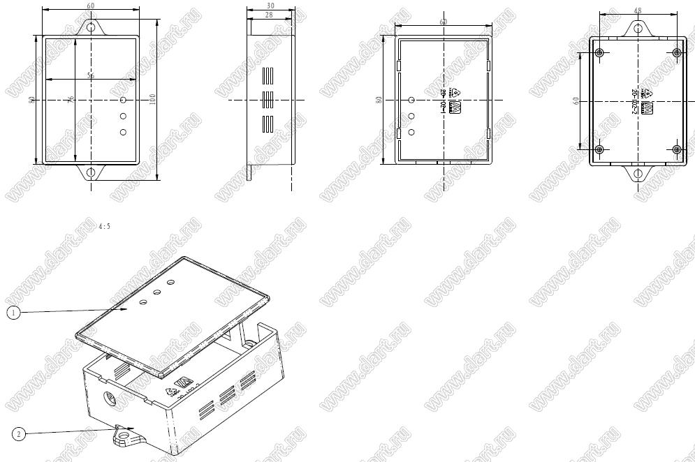 Каталог > Корпусные и установочные изделия > Корпуса для РЭА > Электрические соединительные коробки (Case 20-хх) > Case 20-102A