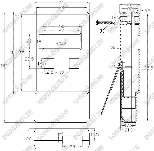 Корпус переносной 140x70x26 мм