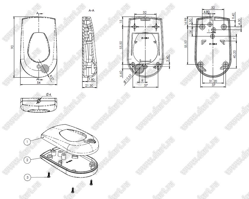 Корпус переносной 90x54x21 мм