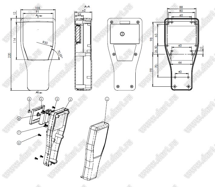 Корпус переносной 220x105x52 мм