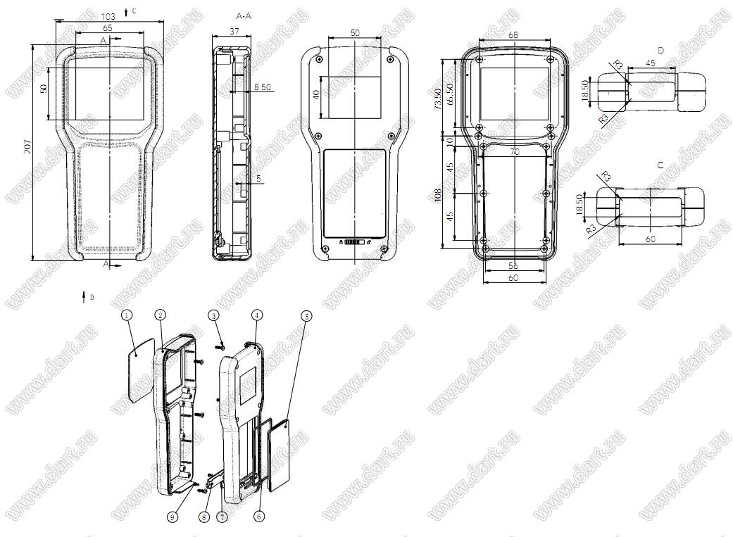 Корпус переносной 207x103x37 мм