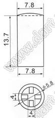 толкатель (колпачок) круглый D=7,8мм; h=13,7мм; посадочное отверстие 4x4мм; пластик ABS; серый