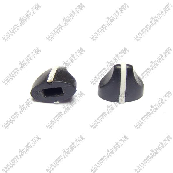 ручка овальная на потенциометр 10x5,9мм; h=9мм; посадочное отверстие 4x2мм; пластик ABS; черный с белой вставкой