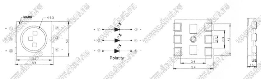 Каталог > Оптоэлектроника и индикация > Светодиоды и изделия на светодиодах > ЧИП светодиоды для поверхностного (SMD) монтажа на плату > ЧИП светодиоды SMD полноцветные (RGB) > BT61-2301 SURUBUBGC(S)