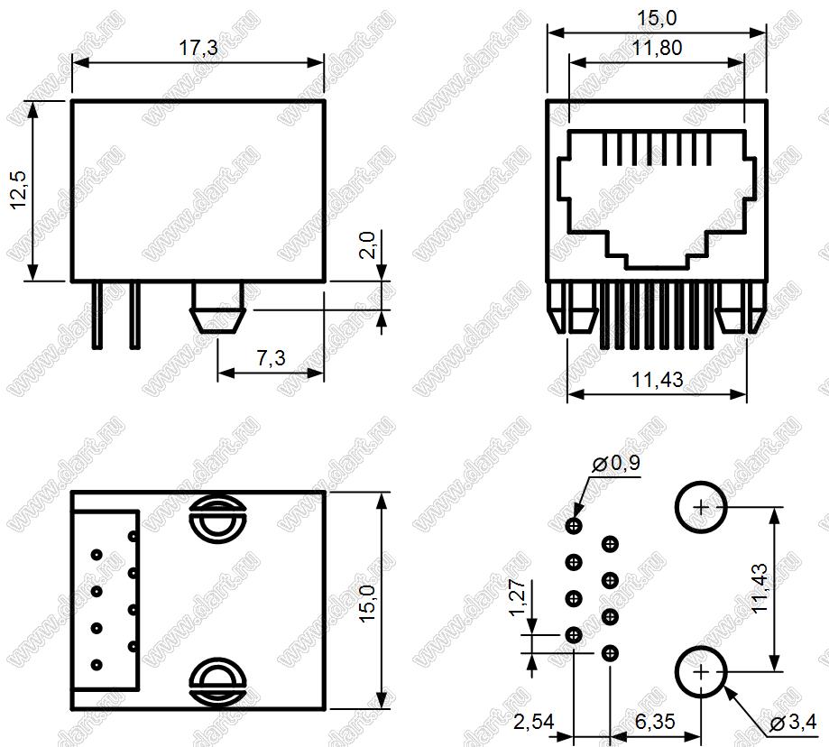Каталог > Электронные компоненты, радиодетали > Разъёмы (соединители, переходники) > Разъемы RJ телекоммуникационные (телефонные, LAN, RJ-45) > 7008-8P8C-SOCKET