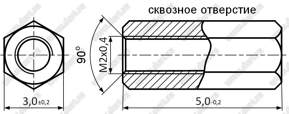Каталог > Фурнитура для электронных устройств > Крепеж металлический (метизы) и пластиковый > Стойки резьбовые > Стойки резьбовые металлические > PCHSS серия > PCHSS2.0-xx (SW=3.0) серия > PCHSS2-05 (3.0)