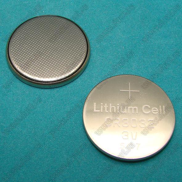 Литиевый элемент питания дисковый (литиевая батарейка); U=3В; D=30мм; H=3,2мм; 560мАч