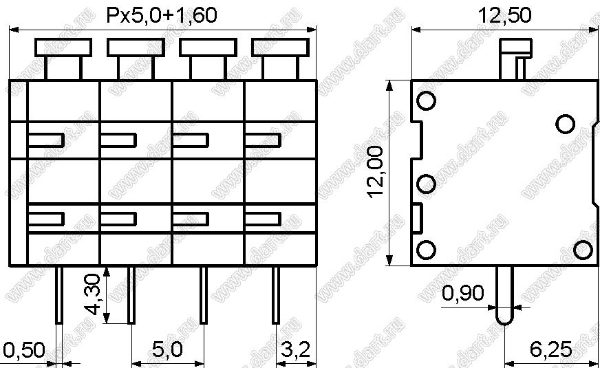 Каталог > Электронные компоненты, радиодетали > Клеммники (колодки клеммные) > Клеммники нажимные безвинтовые для монтажа в отверстия печатных плат > Клеммники нажимные безвинтовые (шаг 5,0 мм) > KF211V-5.0 (DG211V-5.0) серия > KF211V-5.0-06P-14 (DG211V-5.0-06P-14)