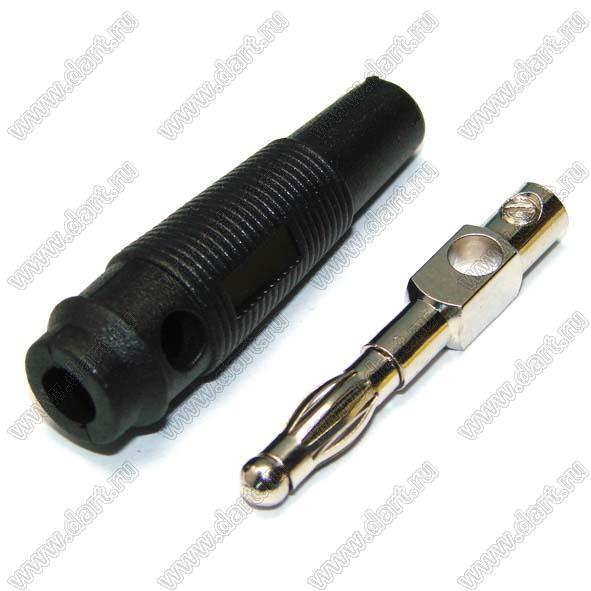штекер BANANA D=4,0 мм L=18 мм под зажим провода винтом; черный