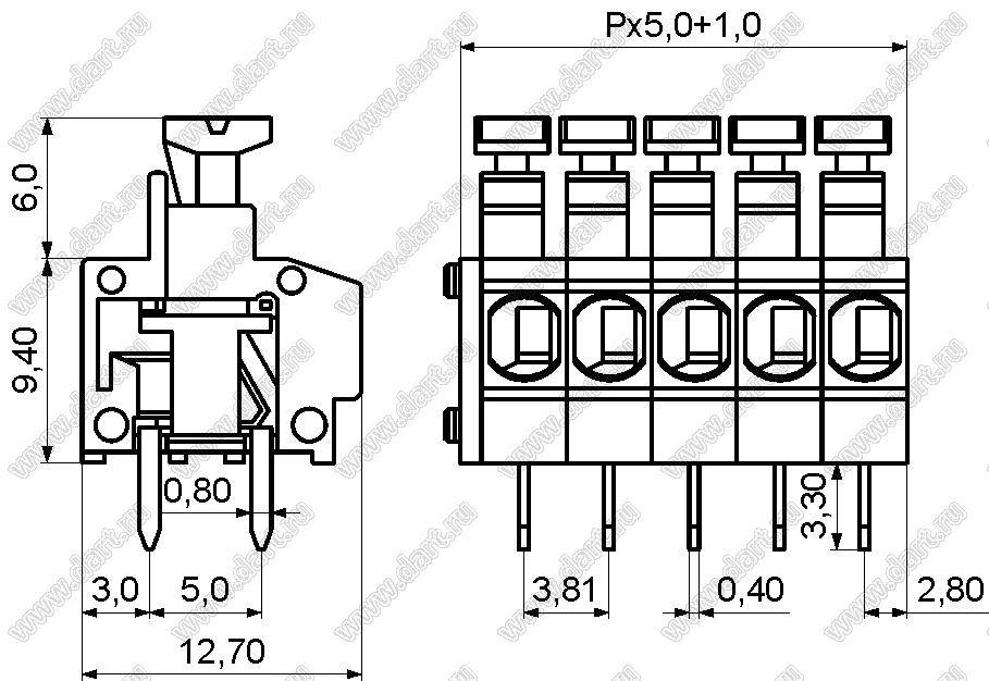 Каталог > Электронные компоненты, радиодетали > Клеммники (колодки клеммные) > Клеммники нажимные безвинтовые для монтажа в отверстия печатных плат > Клеммники нажимные безвинтовые (шаг 5,0 мм) > KF235-5.0 (DG235-5.0) серия > KF235-5.0-01P-11 (DG235-5.0-01P-11)