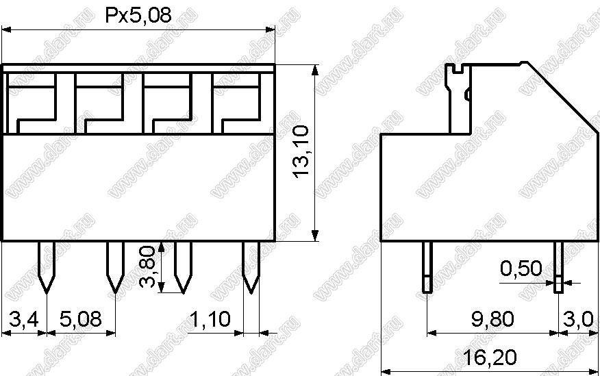 Каталог > Электронные компоненты, радиодетали > Клеммники (колодки клеммные) > Клеммники нажимные безвинтовые для монтажа в отверстия печатных плат > Клеммники нажимные безвинтовые (шаг 5,08 мм) > KF237-5.08 (DG237-5.08) серия > KF237-5.08-05P-14 (DG237-5.08-05P-14)