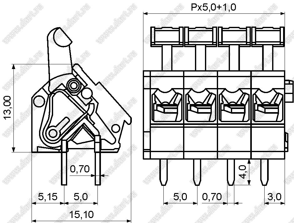 Каталог > Электронные компоненты, радиодетали > Клеммники (колодки клеммные) > Клеммники нажимные безвинтовые для монтажа в отверстия печатных плат > Клеммники нажимные безвинтовые (шаг 5,0 мм) > KF243-5.0 (DG243-5.0) серия > KF243-5.0-01P-11