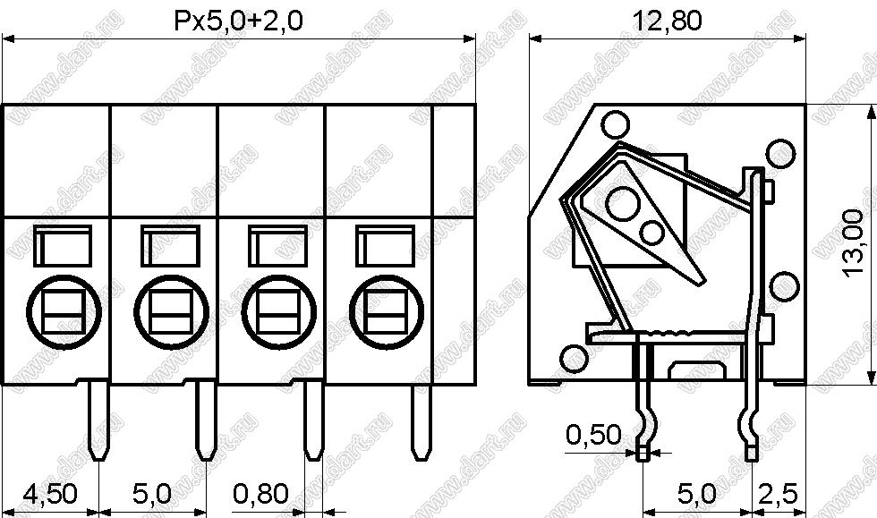 Каталог > Электронные компоненты, радиодетали > Клеммники (колодки клеммные) > Клеммники нажимные безвинтовые для монтажа в отверстия печатных плат > Клеммники нажимные безвинтовые (шаг 5,0 мм) > KF250-5.0A серия > KF250-5.0A-01P-14