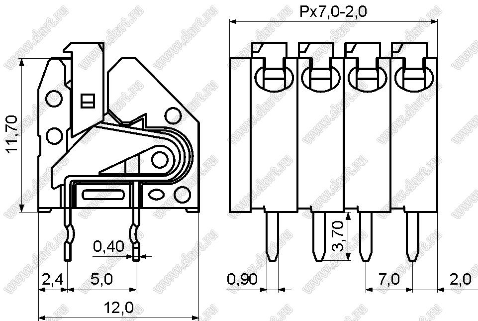 Каталог > Электронные компоненты, радиодетали > Клеммники (колодки клеммные) > Клеммники нажимные безвинтовые для монтажа в отверстия печатных плат > Клеммники нажимные безвинтовые (шаг 7,0 мм) > KF250-7.0 (DG250-7.0) серия > KF250-7.0-01P-14 (DG250-7.0-01P-14)