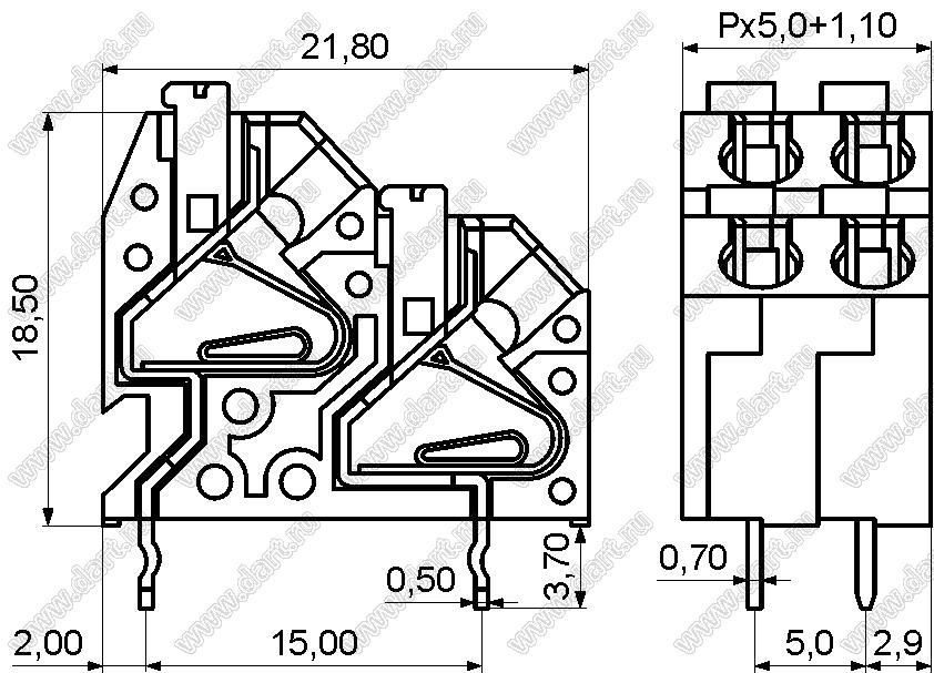 Каталог > Электронные компоненты, радиодетали > Клеммники (колодки клеммные) > Клеммники нажимные безвинтовые для монтажа в отверстия печатных плат > Клеммники нажимные безвинтовые (шаг 5,0 мм) > KF250T-5.0 (DG250T-5.0) серия > KF250T-5.0-01P-14 (DG250T-5.0-01P-14)