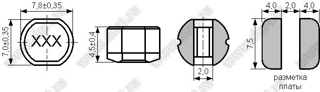 Габаритные размеры: 7,8x7,0x4,5 мм Диапазон температур: -25...+85 °C |