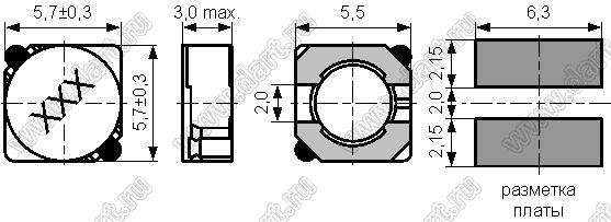 Каталог > Электронные компоненты, радиодетали > Дроссели > Дроссели экранированные для поверхностного (SMD) монтажа > CSS0528P серия (5,7x5,7x3,0 мм)