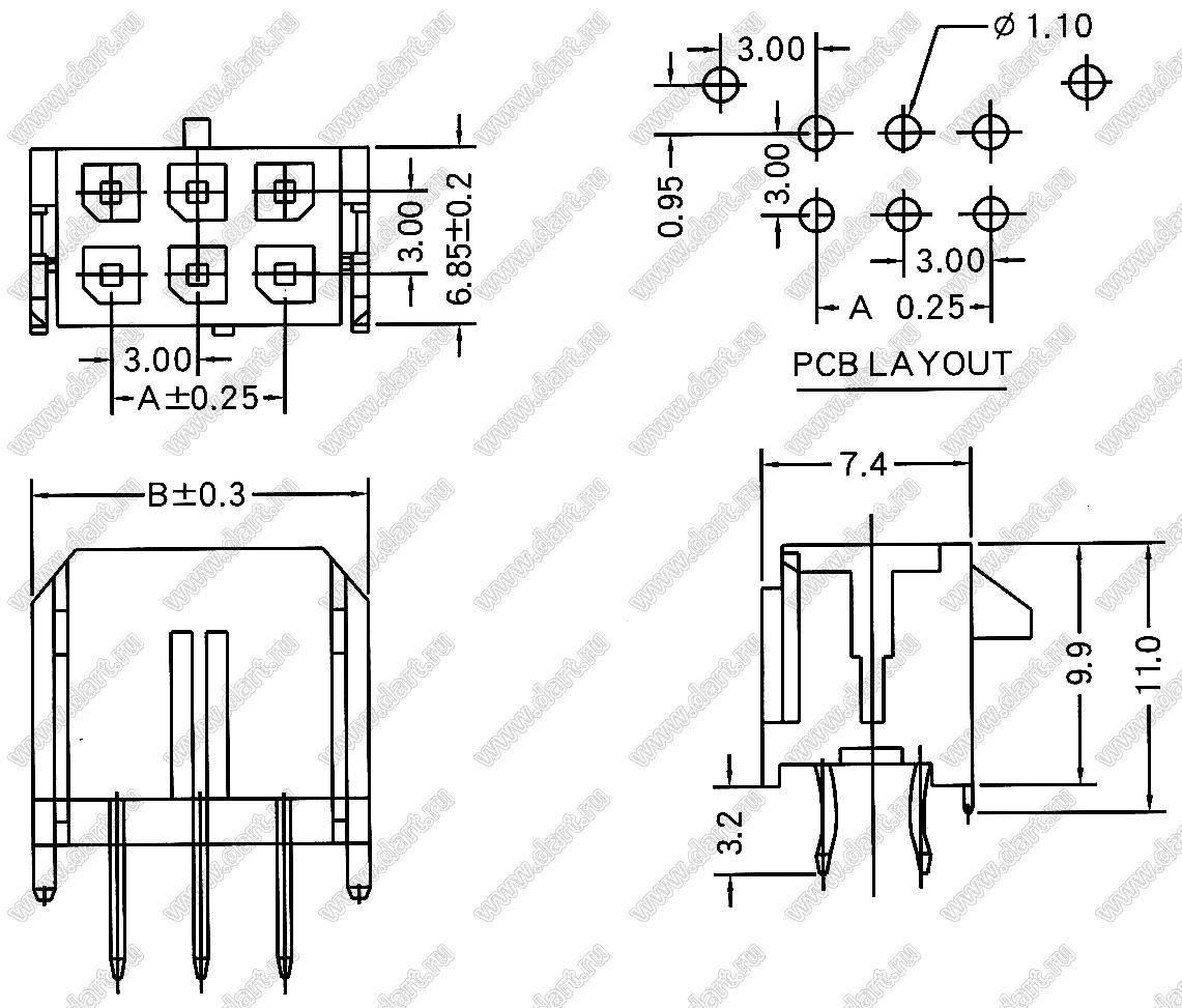 Условия поставки вилок прямых двухрядных на плату для выводного монтажа серии 3000WV-2xXXP (Micro-Fit 3.0™ MOLEX 043045-XX12, 5561S-XX) уточняйте у наших менеджеров.