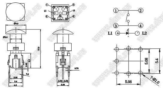 Тактовые кнопки прямые для монтажа в отверстия платы