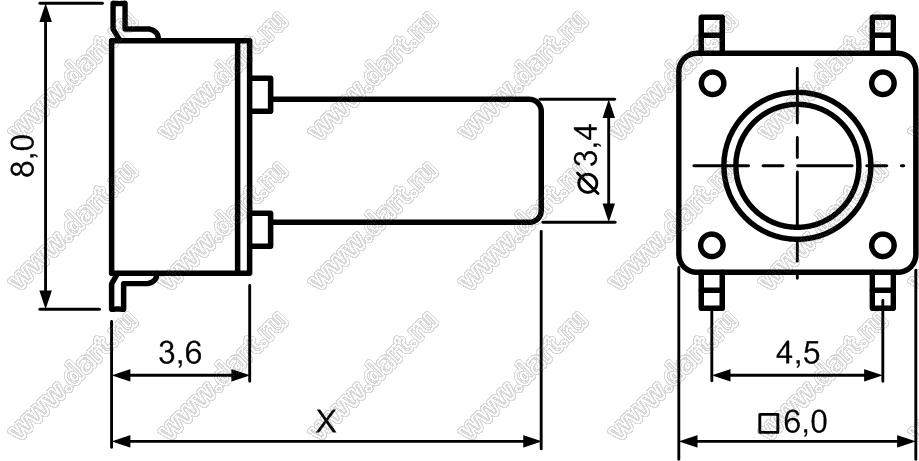 7) Упаковка: T/R: в ленте на ролике (возможна только для высот толкателя 4,3 и 5,0 мм) пусто: в пакете