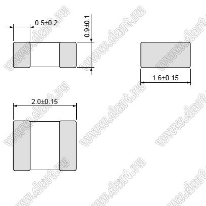 Типоразмер: 0806 (2016) Температура рабочая Tраб.: -55...+125 °C |