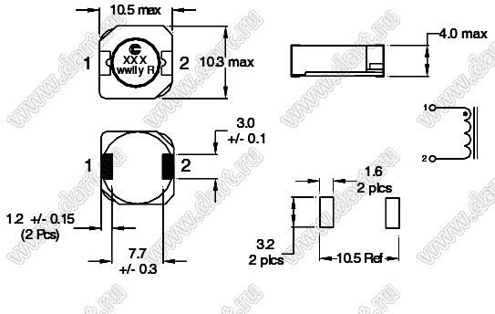 Каталог > Электронные компоненты, радиодетали > Дроссели > Дроссели экранированные для поверхностного (SMD) монтажа > DR1040 серия (10,5x10,5x4,0 мм)