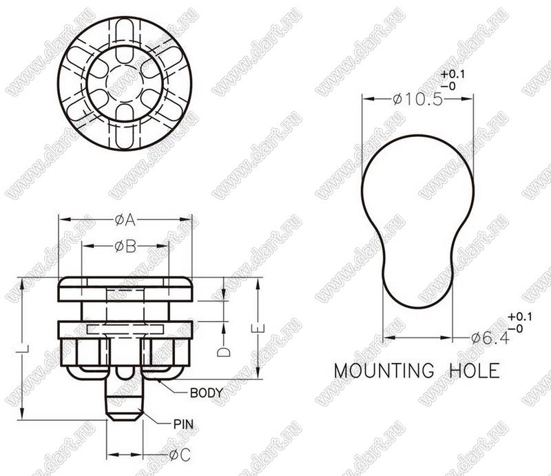Каталог > Фурнитура для электронных устройств > Амортизаторы > Монтажные амортизаторы для жестких дисков > TGM серия, со штифтом > TGM-74