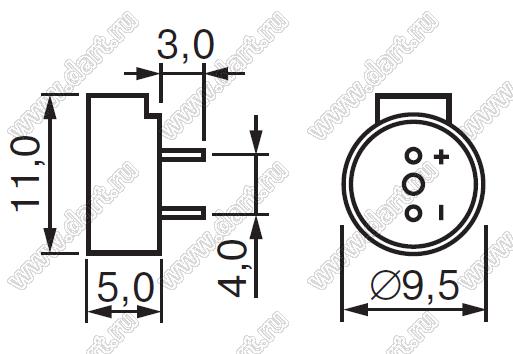 Каталог > Электронные компоненты, радиодетали > Излучатели звука > Излучатели звука - Электромагнитные гудки для выводного монтажа / Зуммеры электромагнитные > Серия HCM > HC0905A (НС0905T/208)