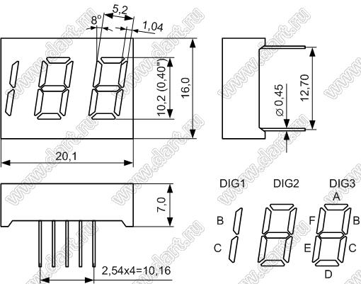 Каталог > Оптоэлектроника и индикация > Индикаторы светодиодные (сегментные дисплеи, матрицы, шкалы, светящиеся поля) > Цифровые и цифро-буквенные cветодиодные сегментные индикаторы (дисплеи) > 2,5-разрядные 7-сегментные индикаторы > 2,5-разр. 0.4 дюйм. 7-сегм. 4203 серия > BJ4203BH