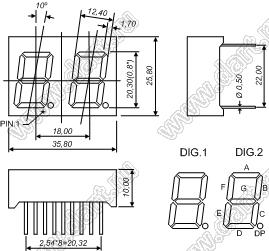 Каталог > Оптоэлектроника и индикация > Индикаторы светодиодные (сегментные дисплеи, матрицы, шкалы, светящиеся поля) > Цифровые и цифро-буквенные cветодиодные сегментные индикаторы (дисплеи) > 2-разрядные сегментные индикаторы > 2-разр. 0.8 дюйм. 7-сегм. 8201 серия > BJ8201BH